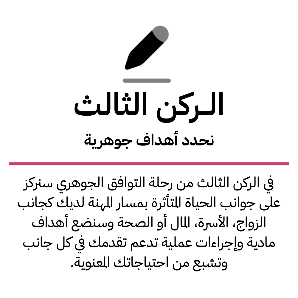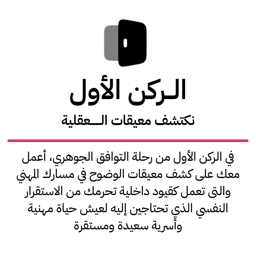 نعمل في هذا الركن على تحقيق التوافق والاستمرارية من خلال خلق مسار مهني واضح الرؤية ومحدد الإتجاه قائم على أساس ثابت، مستقر ومرن، يمنحك شعور الإنجاز… بدون ضغط او فوضى داخلية.