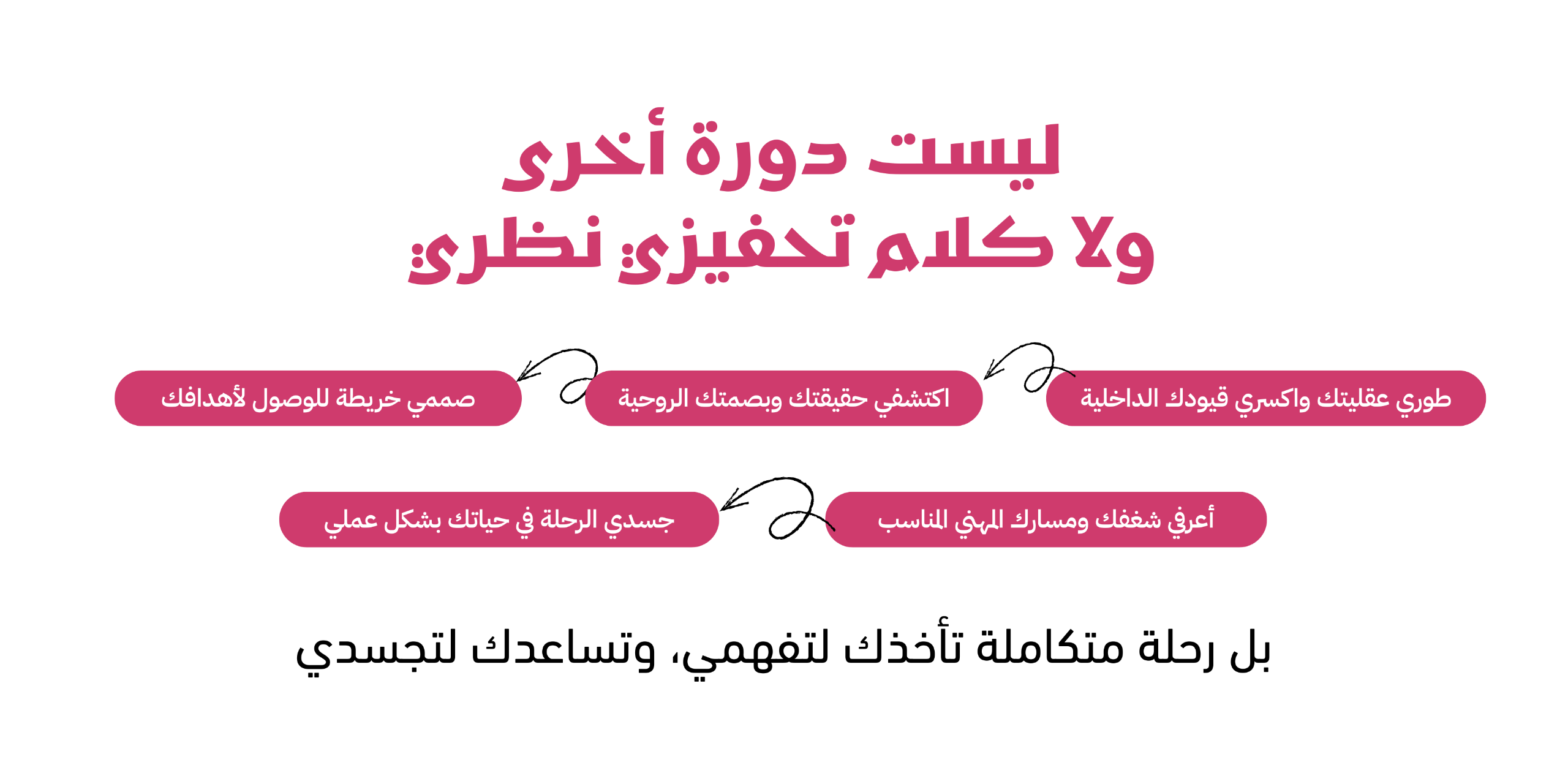 رحلة شخصية مكونة من 5 أركان أساسية، تساعد الأكاديميات وأصحاب المهن الاحترافية من النساء في اكتشاف المسار المهني الذي يحقق لهن النجاح المهني والهدوء النفسي دون التخلي عن مسؤولياتهم الزوجية والأسرية