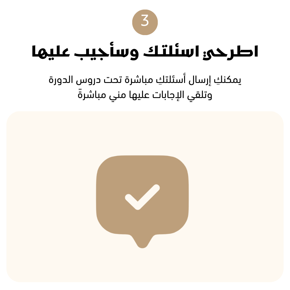 اتوقع أن المشكلة كانت في قصور فهمي للوعي المالي ومن خلال الدورة استوعبت جوانب أكبر. الدوره جدا رائعه وحقيقة فيها تعلمت اللي لي سنين مو قادرة أتعلمه .. داخلي حماس أفكاري مرتبة عندي خطه واضحه أحس وبدون مبالغة أن هالدورة غيرتني فعلا.. طبعا اكيد بسبب اسلوب كوتش مريم بتوصيل المعلومة ومتابعتها وتواجدها بشكل مستمر عشان تجاوبي ع استفساراتنا... جدا جدا ممتنه لها على كل ذلك💚🙏🏻